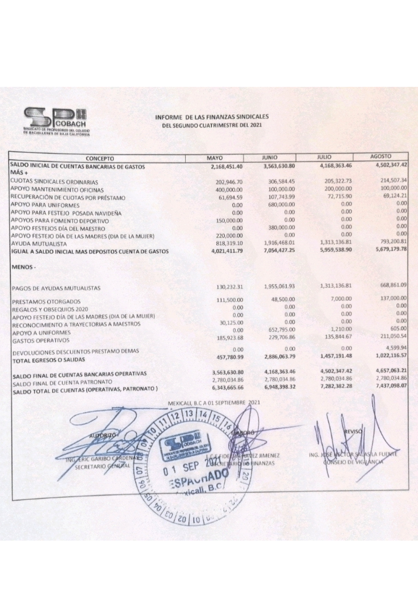 Informe Financiero 2021 – Segundo Cuatrimestre
